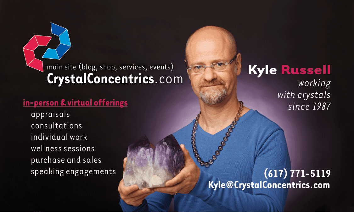 I also handed out cards (which I’d had designed & printed in a rush for this occasion). Yes – I had an agenda of my own – to become known and recognized by this group of far and wide enthusiasts. I say enthusiasts because it didn’t seem like there were a lot in the hardcore geological business. I met only a few jewelry makers and vendors. Several attendees had been at the last workshop 6 years ago – but whether new or old followers – one could safely consider them all to be “early adopters” of Simmons’ unique blend of Crystal Wisdom. The group didn’t seem to be comprised of showy influencers in the Crystal Scene either (such that it is, or isn’t). I felt like I was the only explicit representative of another (related) stream of Crystal Wisdom. Some said they’d been “certified” and clearly used Crystals as part of their Healing Arts. There was certainly a strong presence of Reiki practitioners – people had rich and interesting histories – and were every one of them well intentioned, good people.