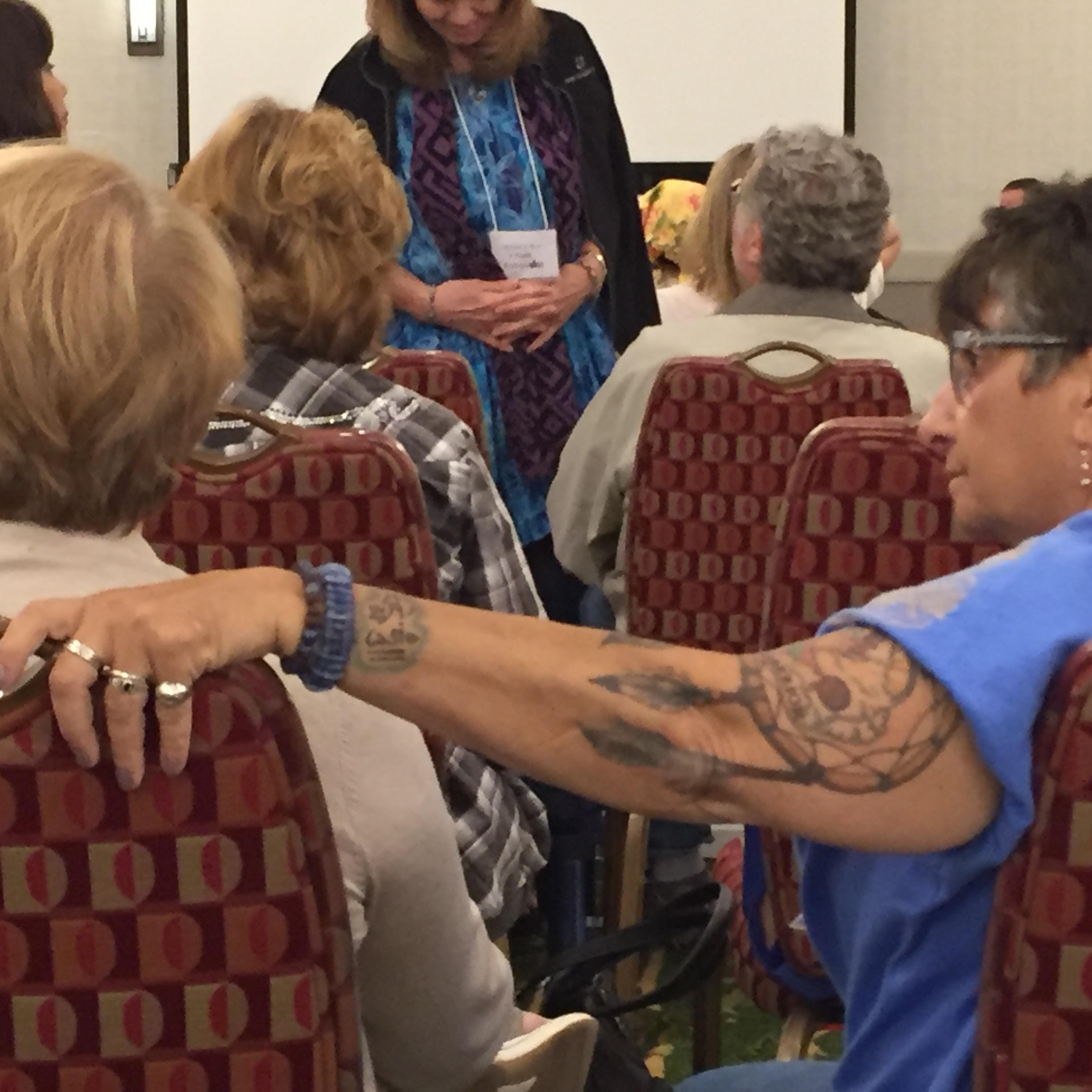 I’m a relatively reserved person (for someone who leads Meditations & Workshops, and deals with the public 10 hours at a time, doing shows) – but I was proud of myself – I made it a point to try to meet everyone (and I almost did). Each day, I sat somewhere different, in hopes of interfacing with a new person for the one-on-one exercises. Once you were settled somewhere, that’s pretty much where you stayed for the morning and afternoon sessions. Then, at lunch (breakfast, and dinner too), I chose a different table each time, so I could sit with people I hadn’t yet connected with. We found points of commonality – from elder care to jewelry, and of course the stones – I brought some show and tell power pieces from my room each day (which I’d brought from home), and was always sporting some of my best pendants (which always drew some positive attention).