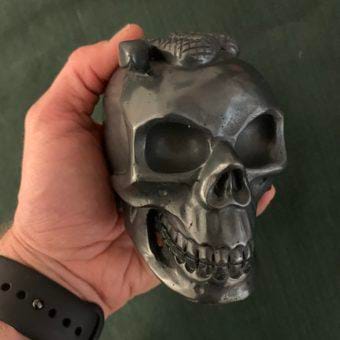 Super heavy, spooky looking Hematite skull with a snake on top of it.