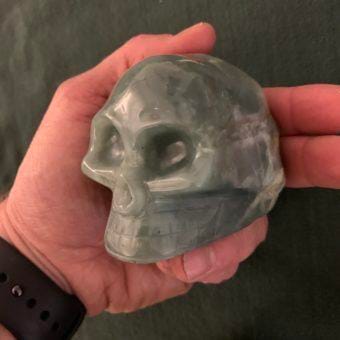 A different woman picked the gray Hematite skull pictured above. It was much heavier than she expected – and instead of focusing on the fierce look it shows us here on the page – she felt it energetically, and in a significant way. I can’t remember exactly how she phrased it – often people say “I hope that made sense” after they speak – and it always does. But it’s sometimes challenging to recreate the language or the gist of what was said. I’ll attempt it here. She said something like: “it seemed particularly grounding, connecting me to the Earth, but also pulling down or drawing out of me something deeper…a way I’m supposed to feel or proceed…that is more authentic to my True Self.”