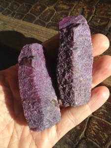 pair of six-sided Ruby Crystals – good size and structure – with deep purple/reddish color