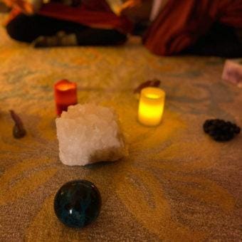 The rocks are meant to enhance that experience, to deepen it. But you have to start with that baseline of Consciousness, of Physical Body Consciousness. Whether that consists of any pains you might be experiencing, any racing thoughts you might be having – the impact point between your bum and the chair – any joints that might be giving you a little trouble. These types of things are all relevant and important to bring to the table and to be aware of. So we usually go through that type of a Guided Meditation, and then people share what that was like for them: either a word that comes to mind regarding their actual experience or something that they’re hoping for, or were hoping for, from that experience as a way of sort of catapulting them closer towards that desired state of mind and body.