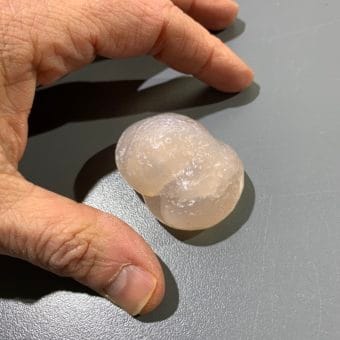 Rose and clear ‘Water Quartz’ palm pieces