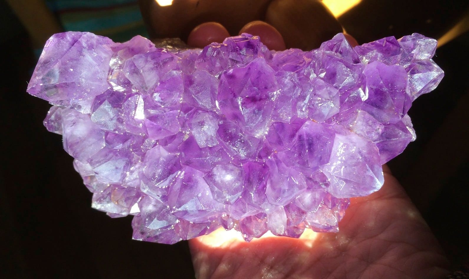 When many points (or terminations) are taken together, in a cluster formation, they take on a different energy than when separated. Together, they emanate (upwards) a spiritually cleansing “mist,” ideal for clearing items, a room, or anything above (and often around) them.Amethyst clusters differently, in different parts of the world – Brazil is where they most commonly come from – though Uruguay has been producing a lot of smaller & darker crystal’ed clusters in recent years. India has Amethyst, as does the U.S. (though American – and Tibetan – Amethyst is often of the Elestial Smoky variety). Madagascar has wonderfully colored material, from off the southwestern coast of Africa.Email Kyle@CrystalConcentrics.com with interest in these or other Crystals, whether it’s more you’d like to learn, or whether you’re interested in purchasing them.