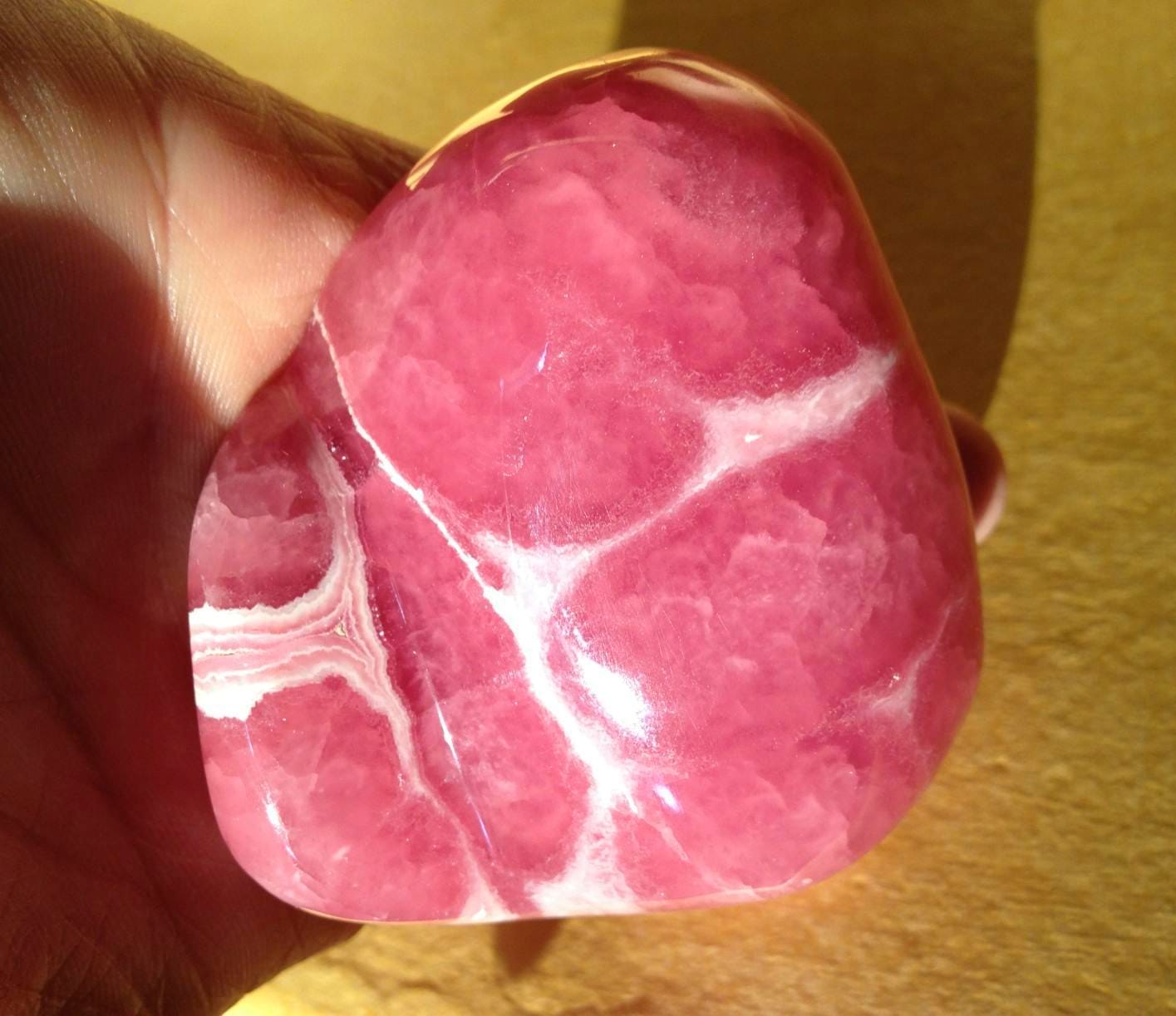 Rhodochrosite is one of my favorite Root Chakra stones – it represents Cellular Vitality and Regeneration – visibly looking like healthy flesh/tissue. The more vibrant it appears, the more energetic “umph” it has, though beyond it’s classically rich red color (as you can see in the featured specimen) it can get to a transparent (even redder) transparent gel color (which is wonderful, from Peru, but not necessarily more powerful). Ultimately, Rhodochrosite is used as a Healing Stone, specifically for and from the Root, and is “designed” to help us restore physical functionality, as much as is possible.As it gets lighter (there’s another, lesser variety from Peru) – or in the case of the completely different stone: Rhodonite – it’s like Rhodochrosite “Lite” (much cheaper, but also less potent).Notice the “botryoidal” (or bubbly) formation, you’ll also see curvaceous layering. White and black are often visible, as well as (sometimes) brown, which is Aragonite (and very nice energetically, quite soft, as well).Rhodochrosite often forms in concentric stalactites that are cut into sections. It presents well with a polished or matt finish, and is even shellac’d sometimes (which I don’t care for, that tends to mask or cover up its energy flow).I specialize in Rhodochrosite – have a huge supply of exceptional specimens – and would be happy to send you some images, as we do mail order. Write me: Kyle@PortalCrystalGallery.com, or visit our storefront, all info at PortalCrystalGallery.com. We also have a few pieces up on our For Sale items site: www.PowerStoneCrystals.com.