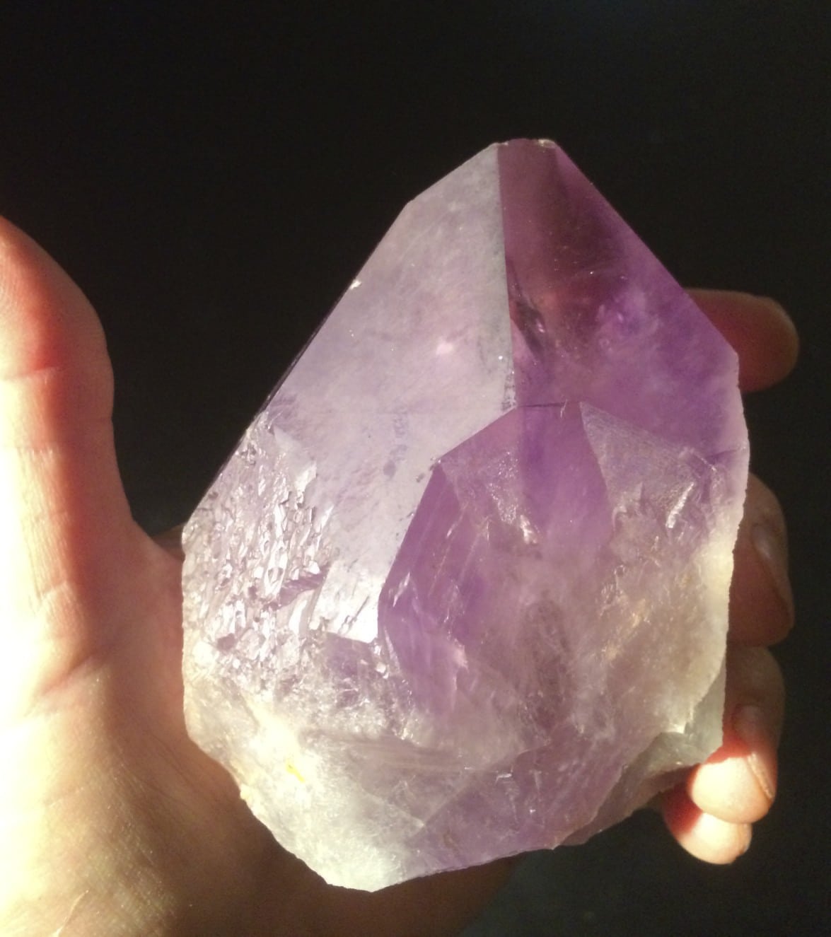 ‘That Color’ – which only seems to happen in Bolivia – a kind of opaque, “glaucoma’d” lavender purple…very soft…and displayed nicely, with a flat cut base. Width: 7.1cm; Height: 8.8cm; Depth: 5.3cm Origin: Latin America, Bolivia
