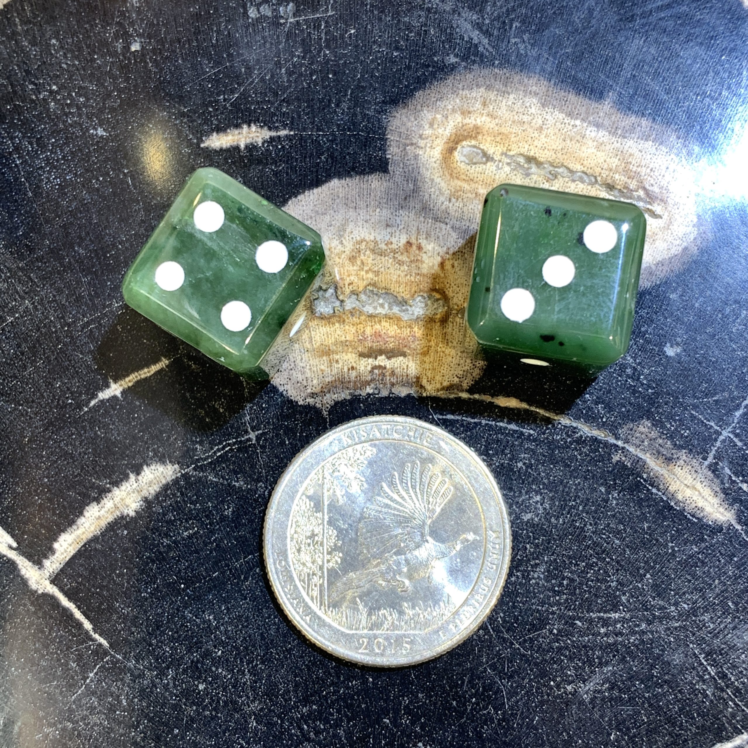 Call in good luck with these jade dice! Nephrite Jade, from British Columbia, Canada, a stone of good luck and prosperity traditionally, we believe it’s associated with Mother Earth, and that it’s a primary Heart Stone. The energies that come with that are support and embrace. Length: 1.5cm; Width: 1.5cm; Depth: 1.5cm Weight: 94ct Origin: North America, Canada (British Columbia)