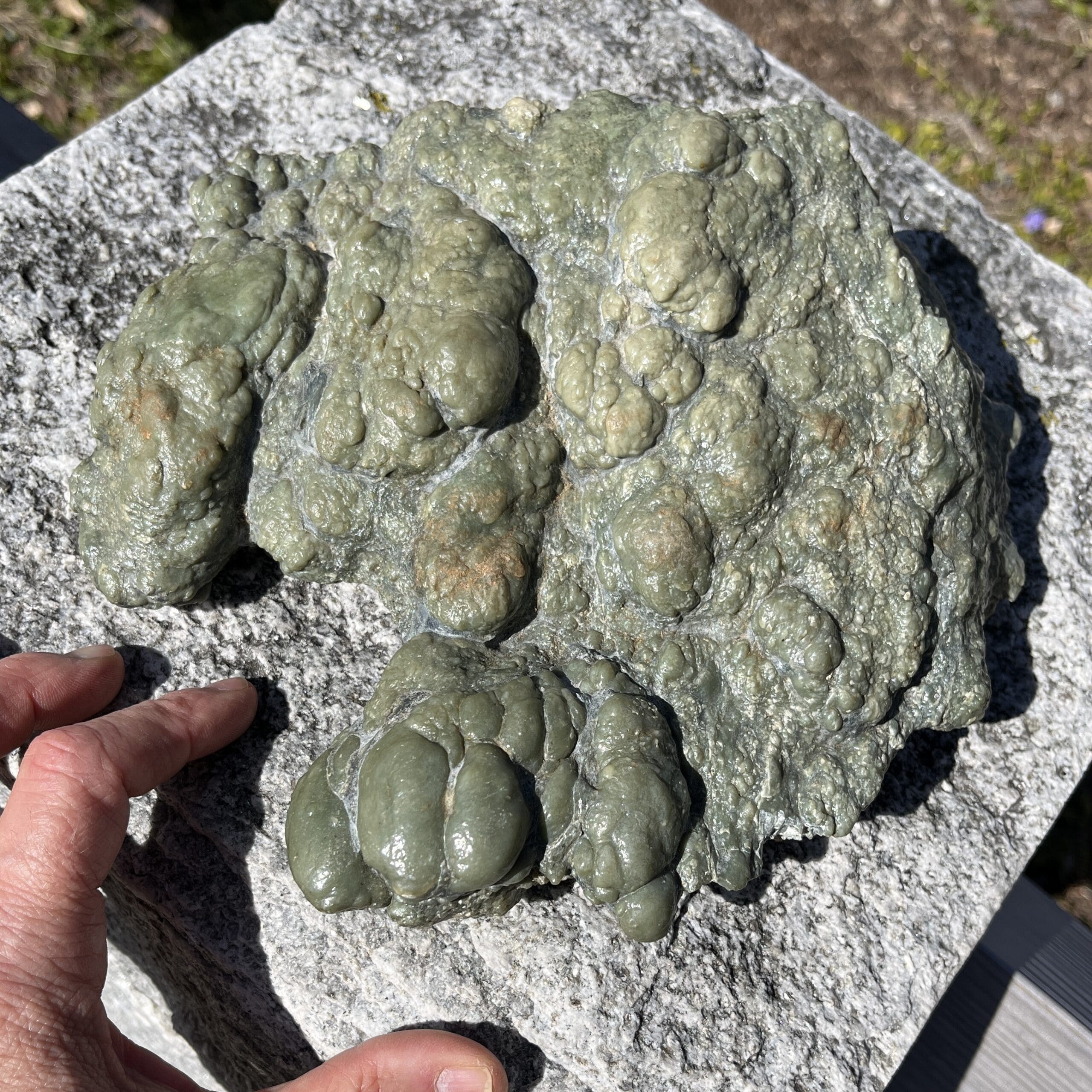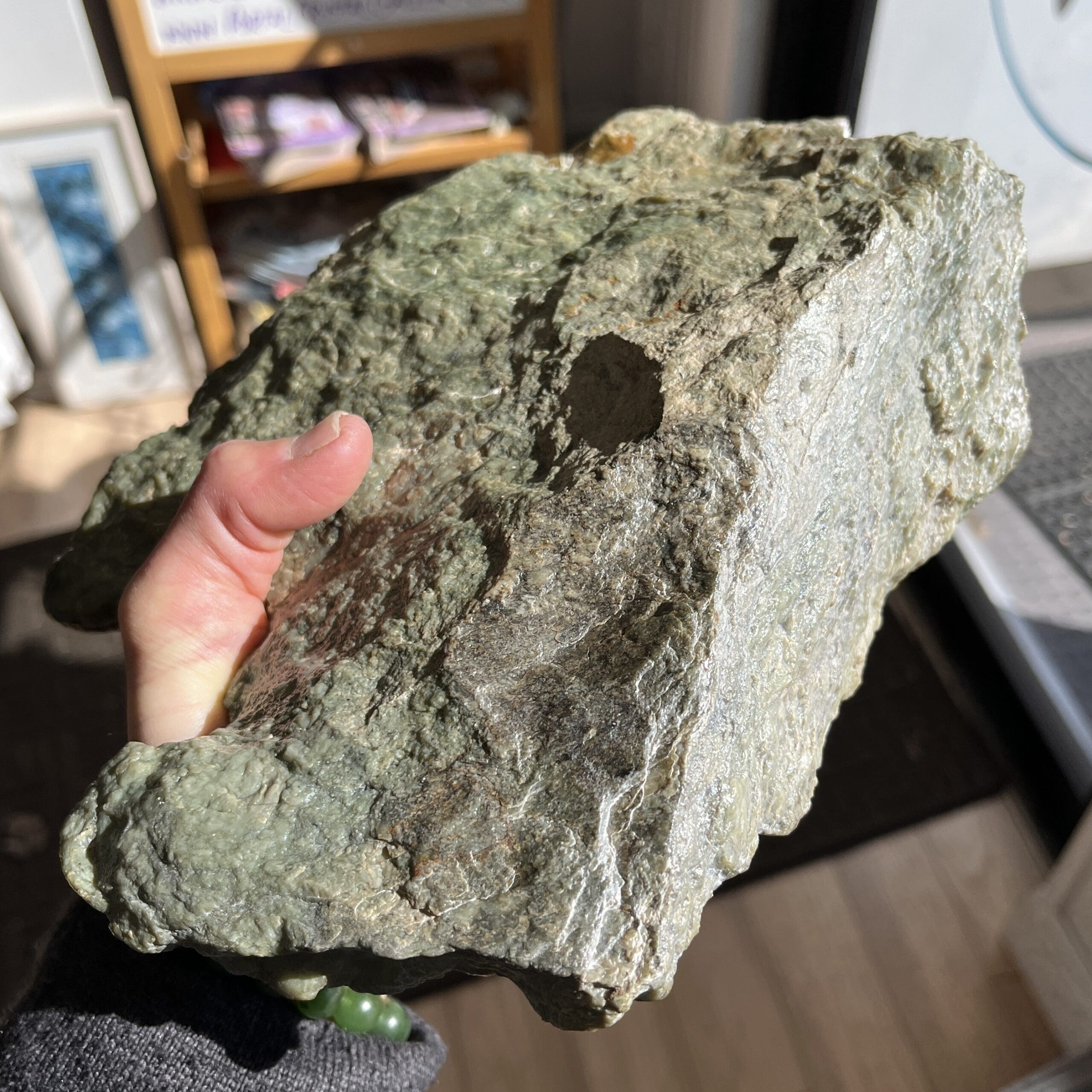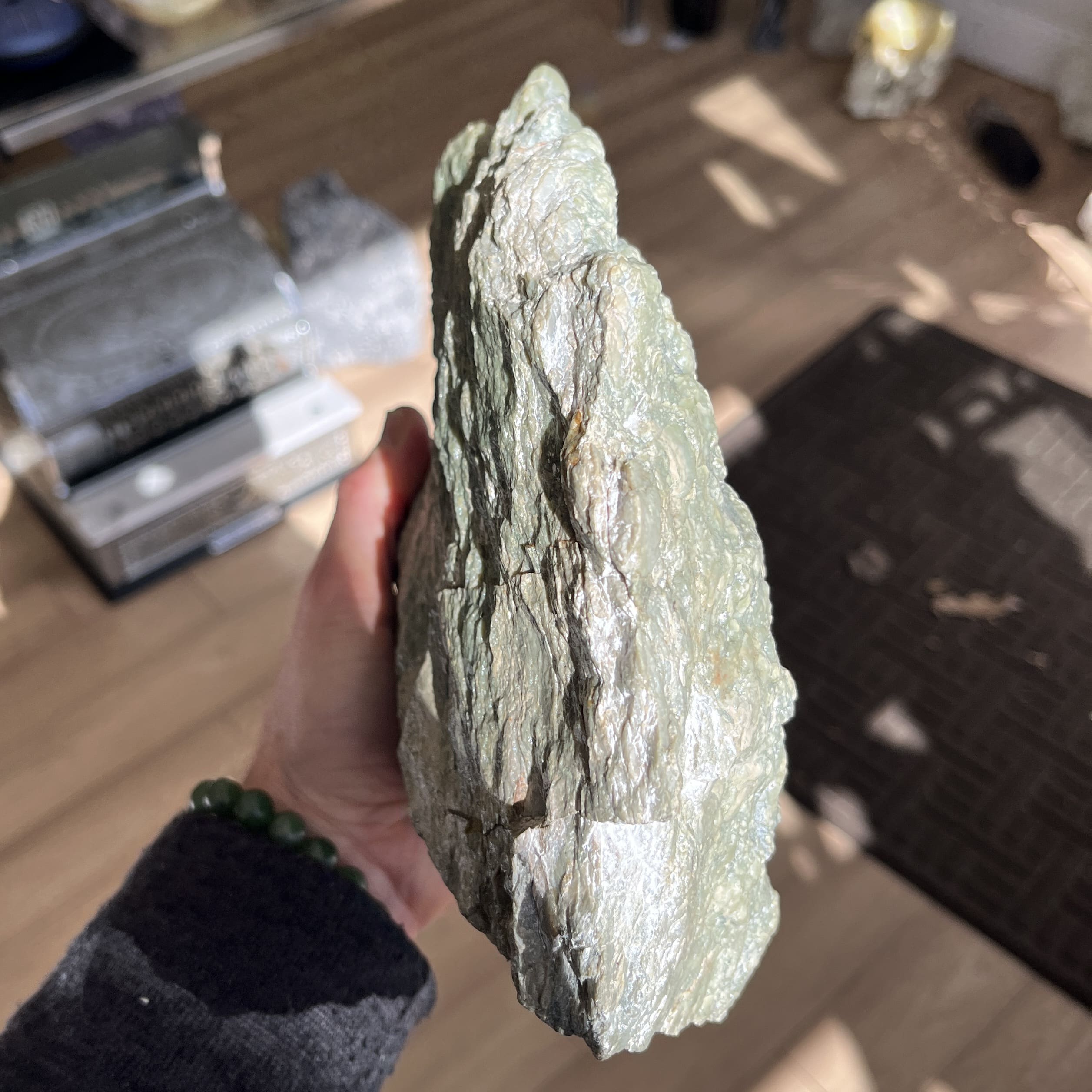 Exceptionally large and well-formed rare Canadian Botryoidal Jade display piece of nearly 7 pounds. We consider this type of authentic Jade to be the Mama Earth Heart Stone, providing soothing calm, and categorized as a Heart-oriented stone. Length: 20.3cm; Width: 21.6cm; Depth: 7.6cm Weight: 3030g (106.88oz) Origin: North America, Canada