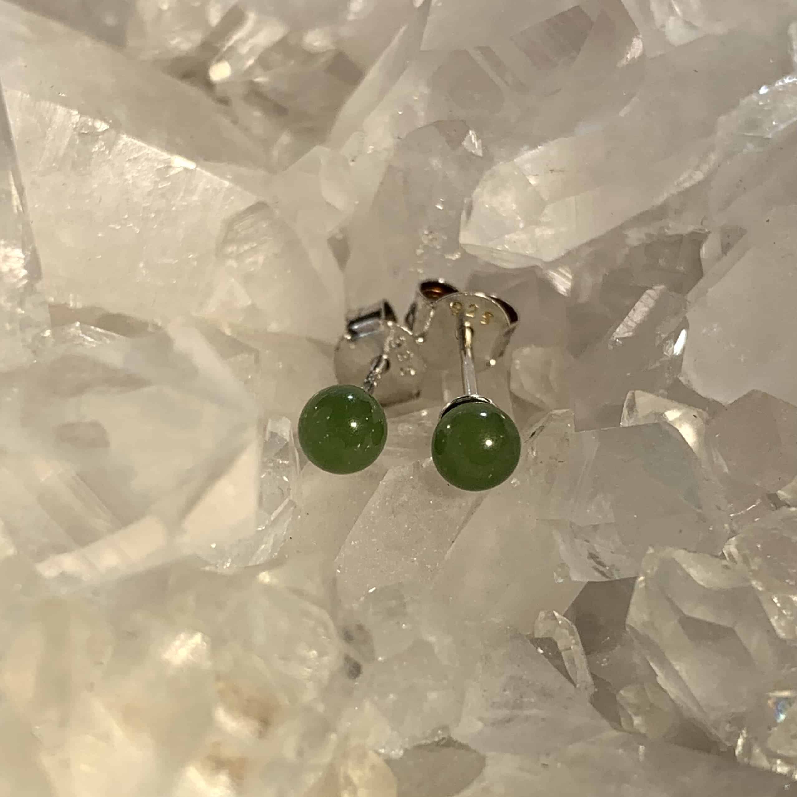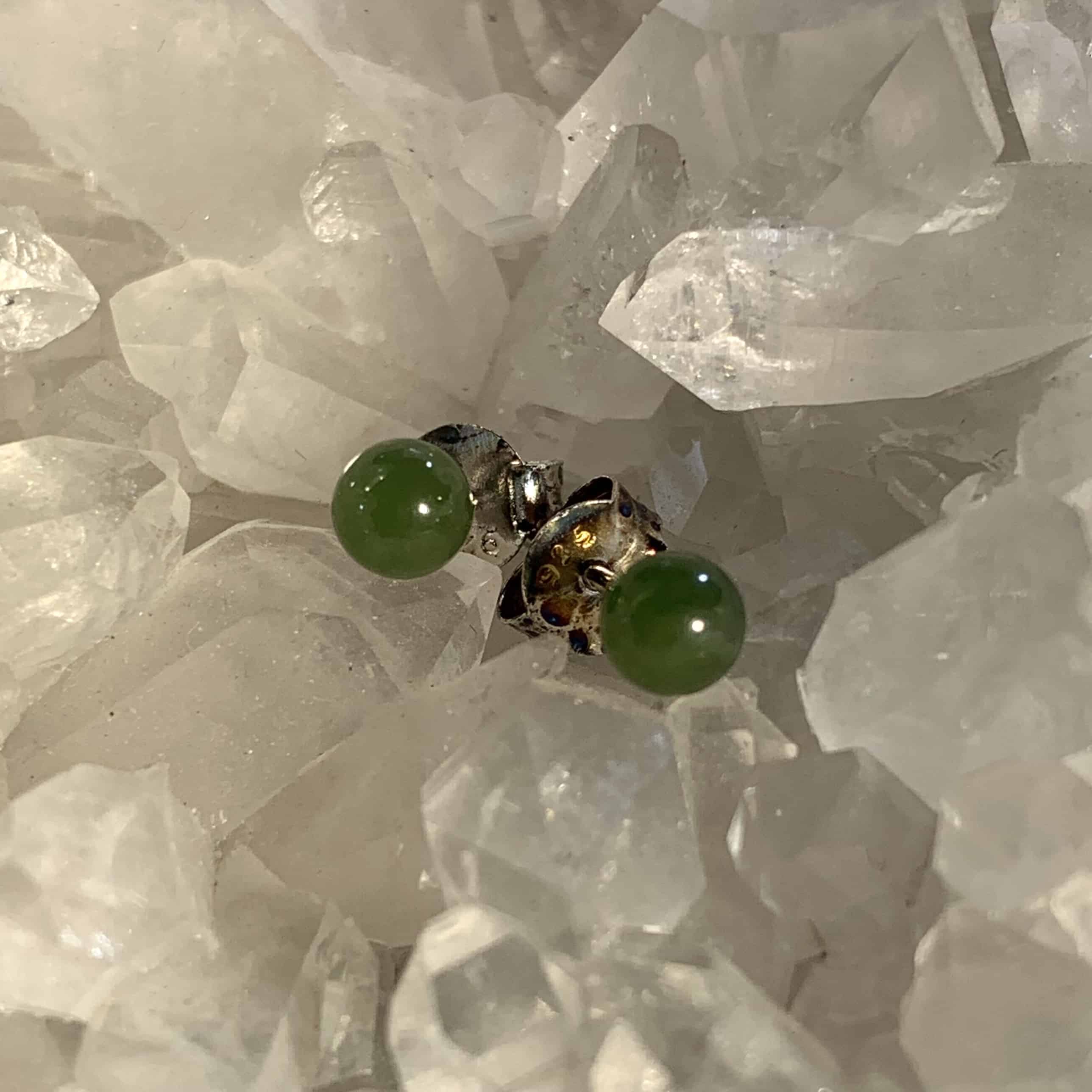 Sweet authentic Jade sphere stud earrings. Sterling backs (and fancy wooden gift box) included. Jade is a Heart stone all about Mother Earth’s embrace, very soothing. Length: .4cm Weight: 2.5ct Origin: North America, Canada
