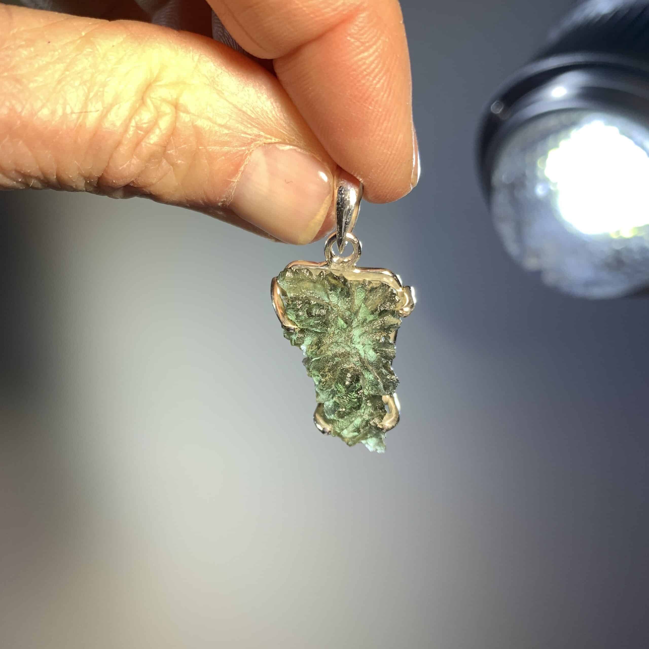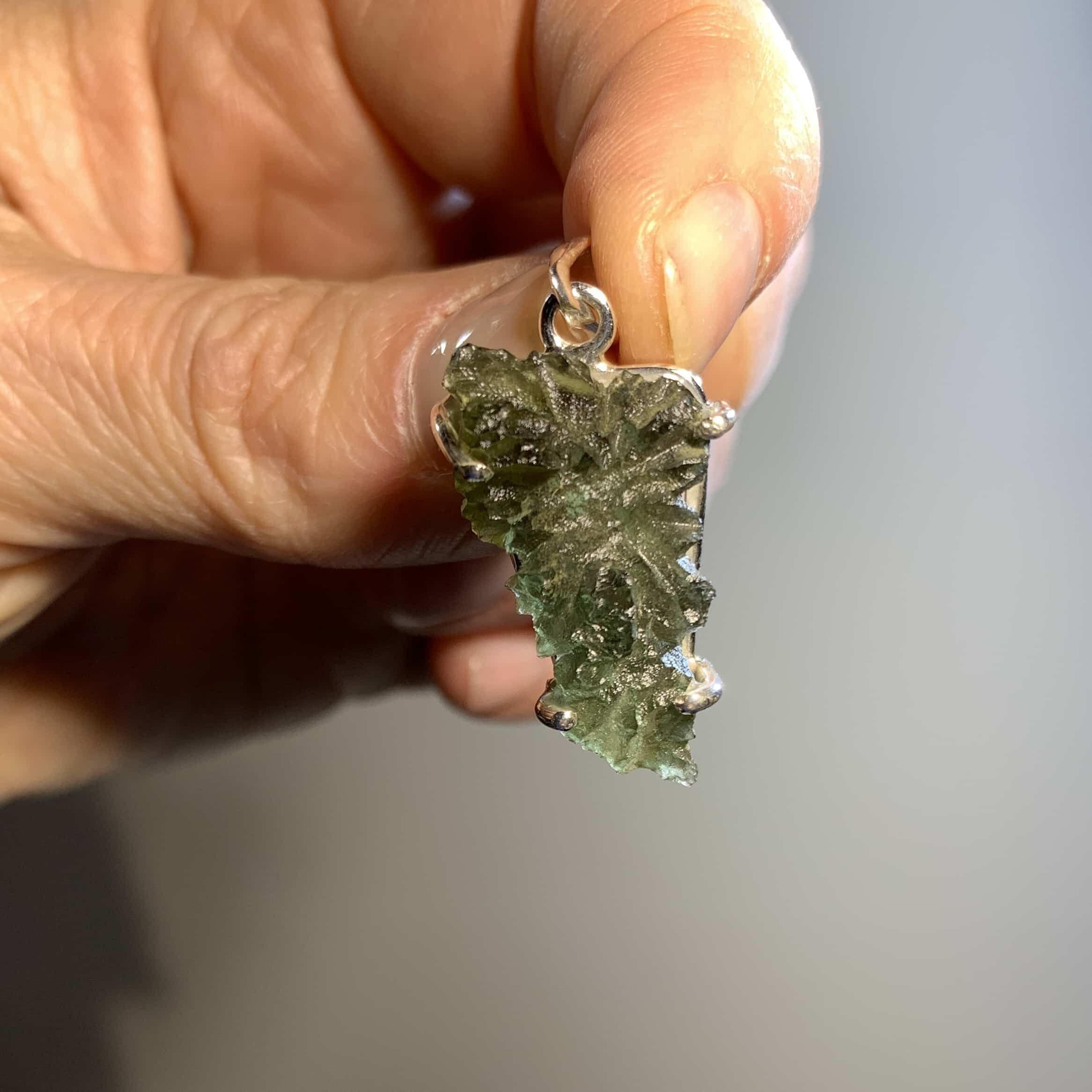 Nickname “Leaf.” Moldavite is the Alien Messenger stone, conveying information from on high. It’s also the only gem quality Tektite in the world, formed from the union of heavenly and earthly bodies 15 million years ago. We do include Statements of Authenticity with each purchase. Length: 3.8cm; Width: 1.8cm; Height: 1cm Weight: 25ct Origin: Europe (Czech Republic)