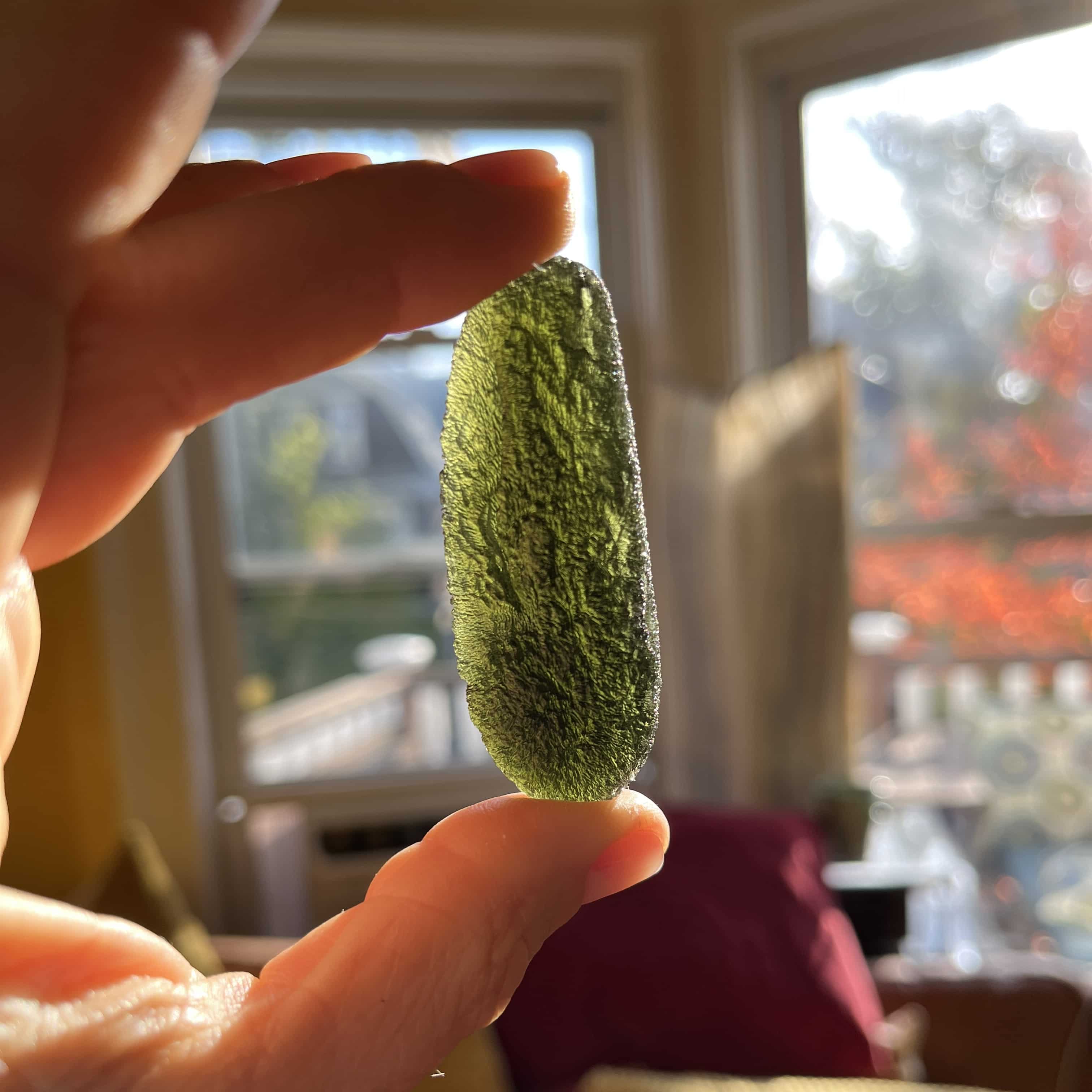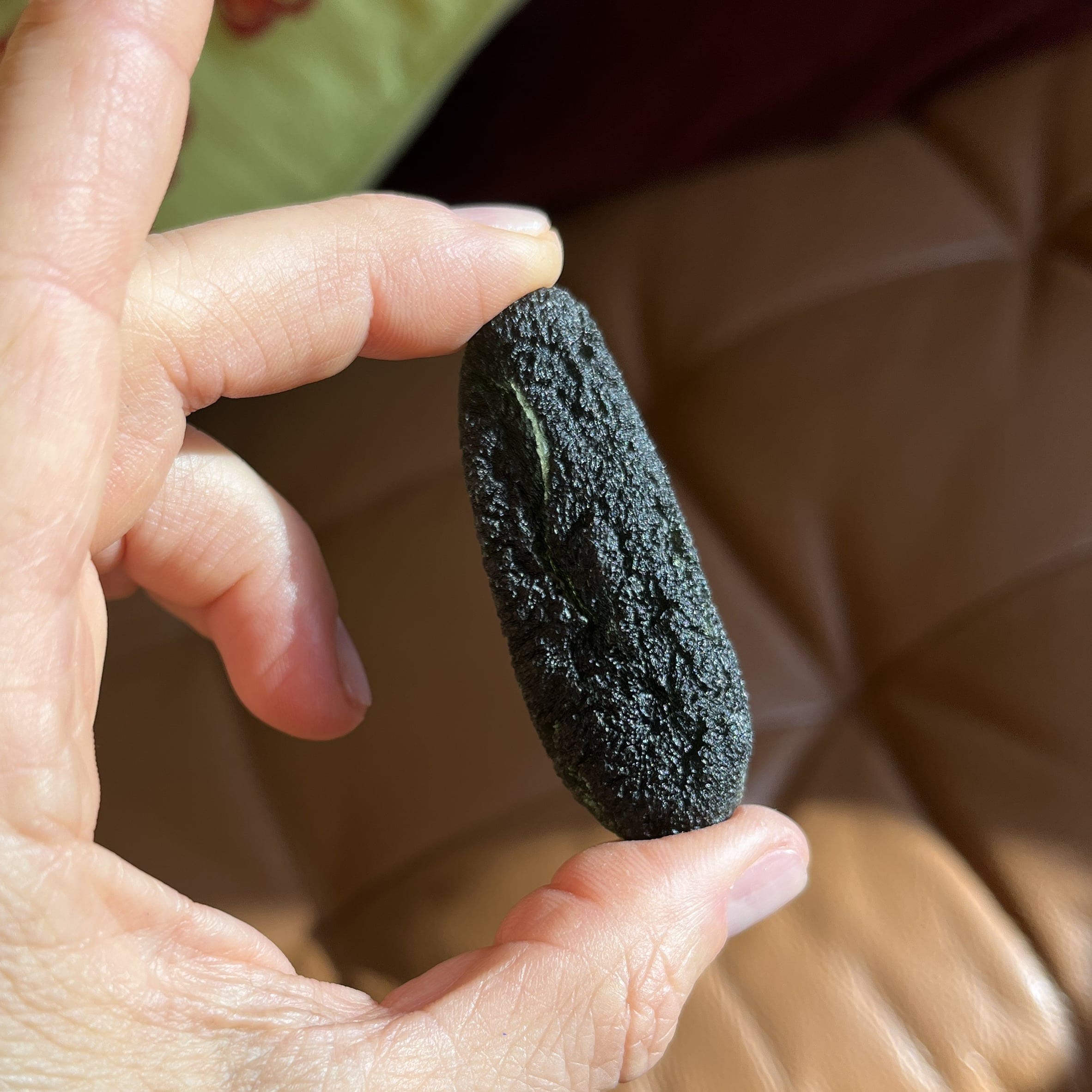Moldavite is the Alien Messenger stone, conveying information from on high. It’s also the only gem quality Tektite in the world, formed from the union of heavenly and earthly bodies 15 million years ago. We do include Statements of Authenticity with each purchase. Length: 6cm; Width: 2.2cm; Depth: 1.4cm Weight: 26.4g (.93oz) Origin: Europe (Czech Republic)