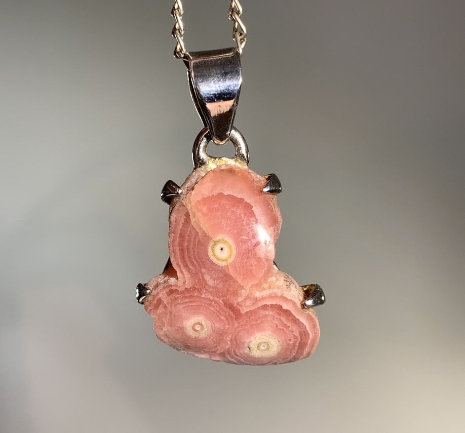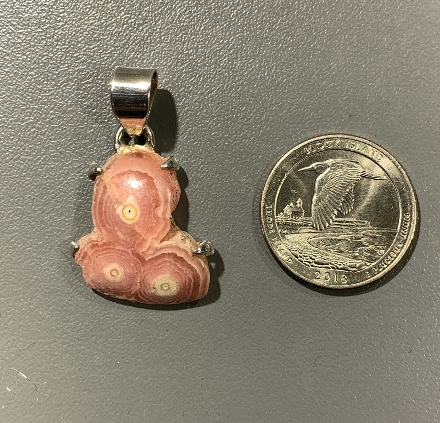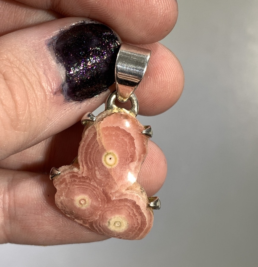 Beautiful orbicular triple sect Rhodochrosite in Sterling.