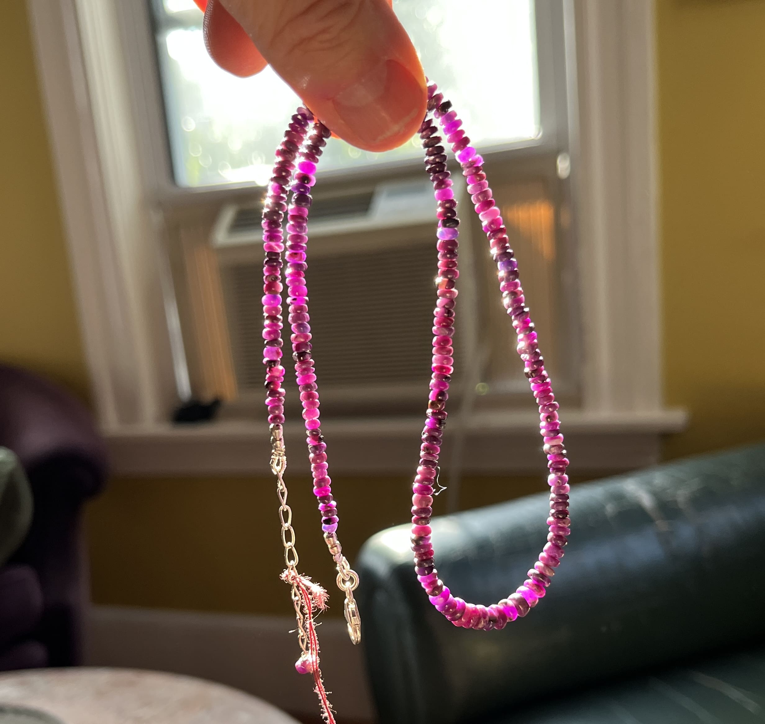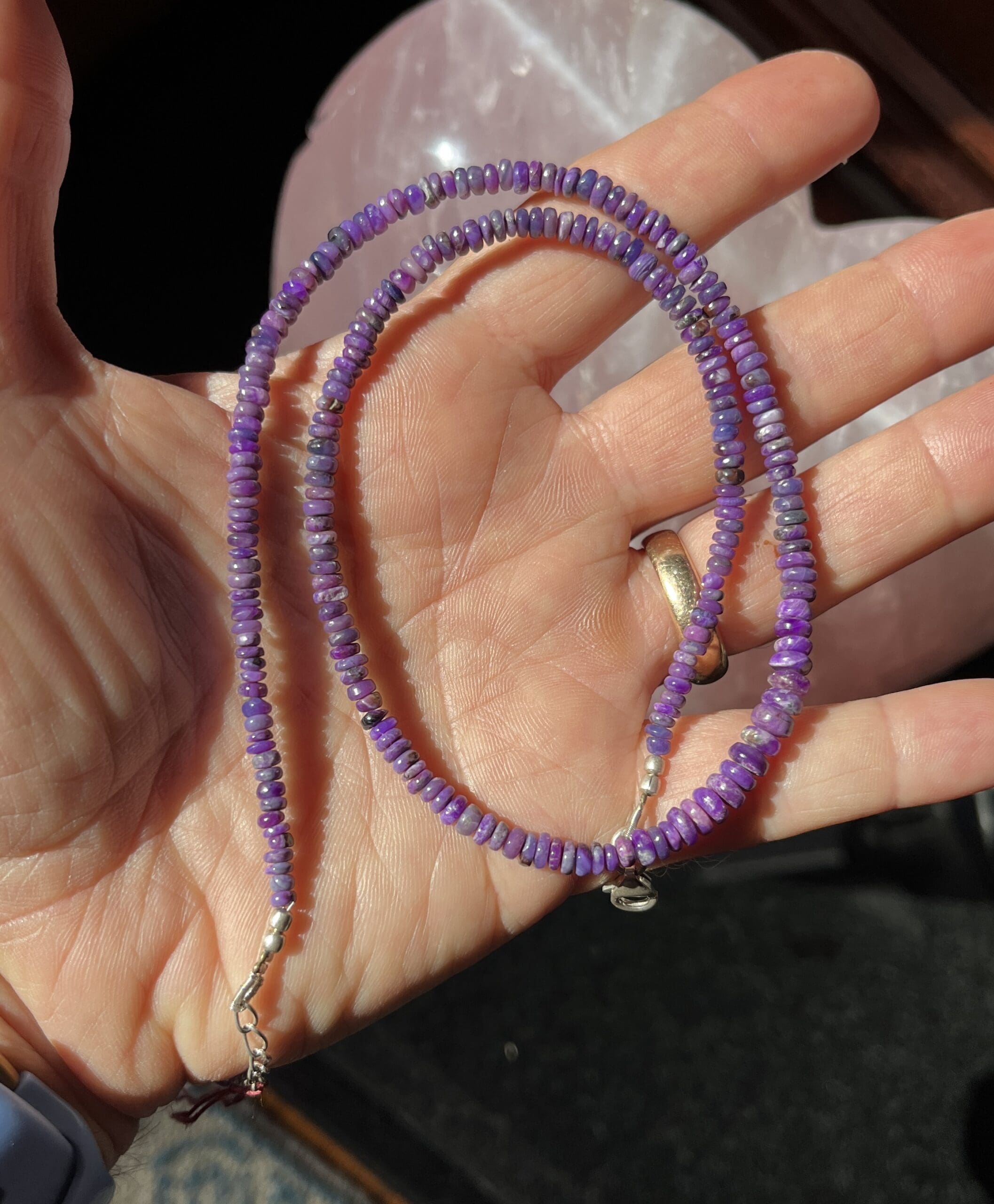 purple semi-gel, bead diameter ranges from 3.17mm to 5.31mm. Length: 50.8cm Weight: 62.5ct Origin: Africa, South Africa