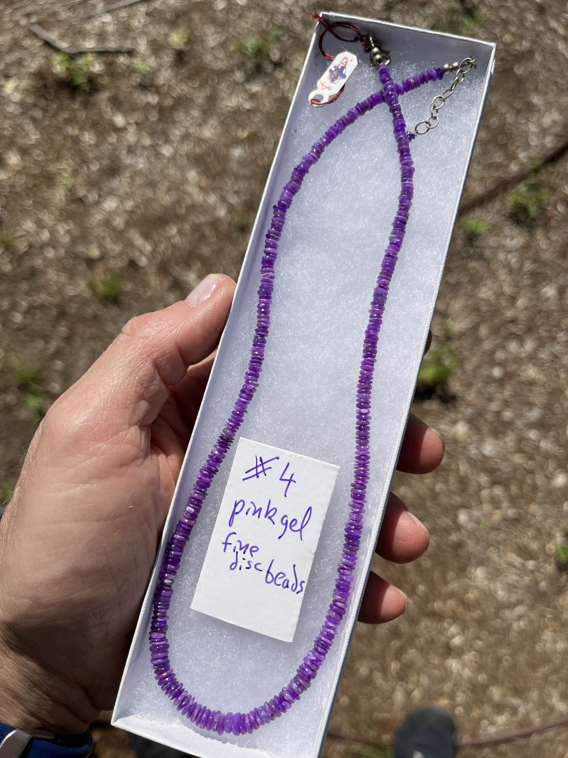Bright pink gel sm discs, bead diameter ranging from 2.73mm to 4.75mm. Length: 47cm Weight: 62ct Origin: Africa, South Africa