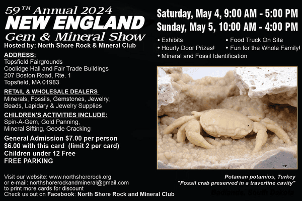 - 59th Annual New England Gem & Mineral Show – Topsfield Fairgrounds, MA – May 4 & 5 – CLICK THRU HERE TO LEARN MORE, Reply w Q’s.